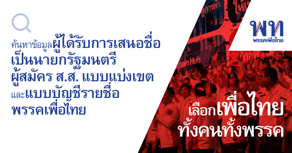 ข อม ลผ สม คร ส ส และผ ได ร บการเสนอช อเป นนายกร ฐมนตร พรรคเพ อไทย เล อกต ง66